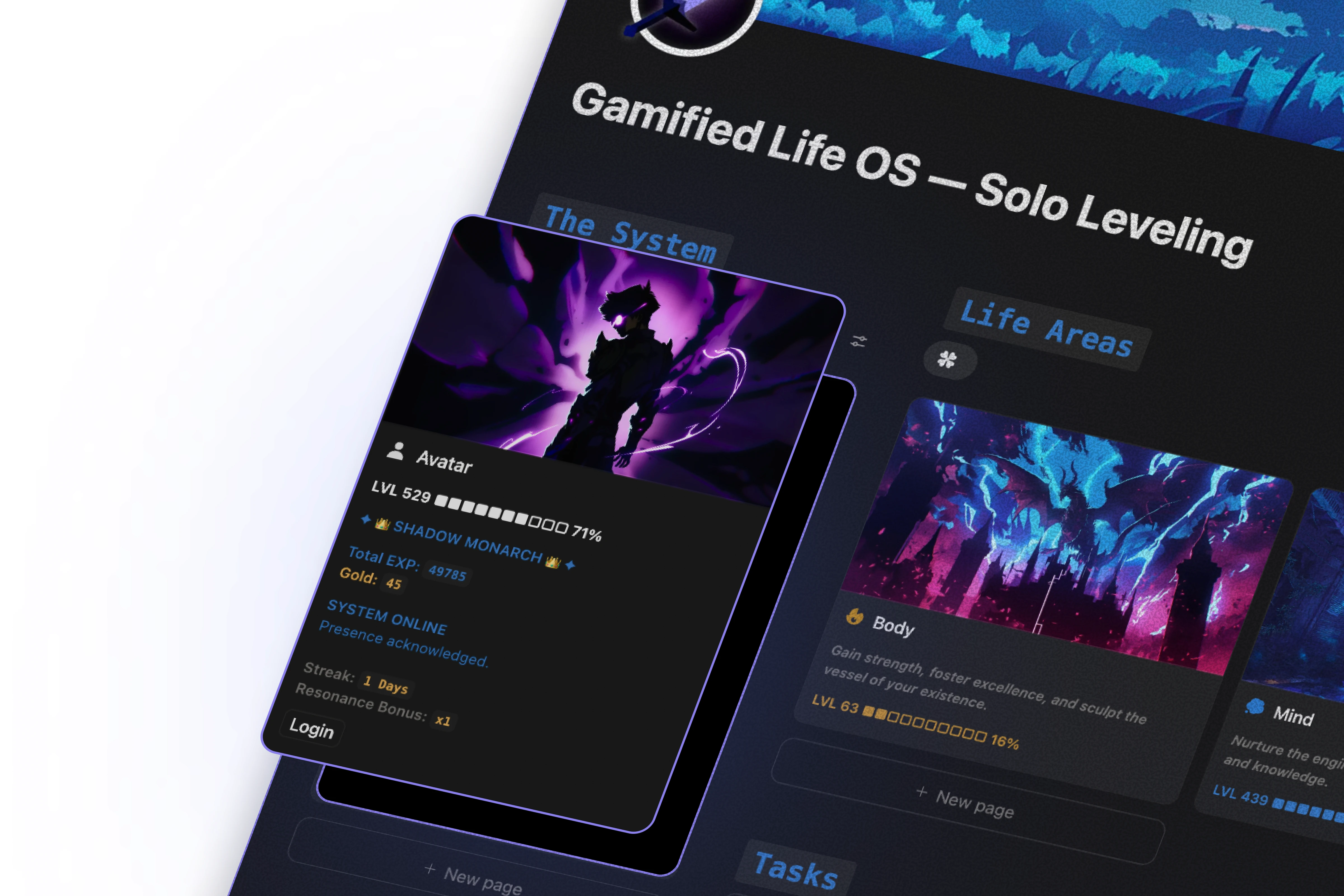 Turn your life into an RPG. Level up through real actions. Join 1,500+ players who've transformed their approach to personal growth with Gamified Life OS, the real life Solo Leveling.